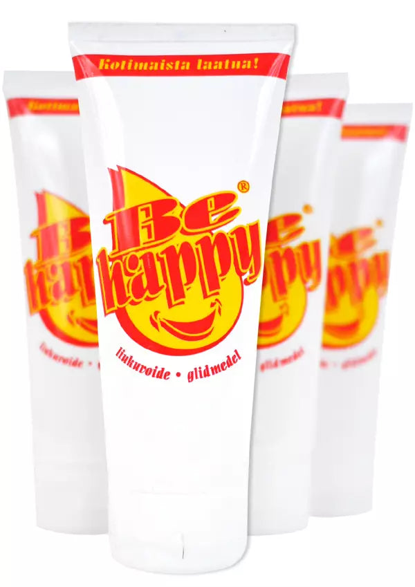 "Retro" pakkaus, mutta tuttu ja turvallinen liukuvoide. Suomalaisten kestosuosikki! Suomalainen Be Happy -liukuvoide on laadukas ja edullinen vesipohjainen perusliukkari, joka tarjoaa pitkäkestoista lisäluistoa kaikkiin makuuhuonepuuhiin. Soveltuu myös käytettäväksi kaikkien seksilelujen kanssa.