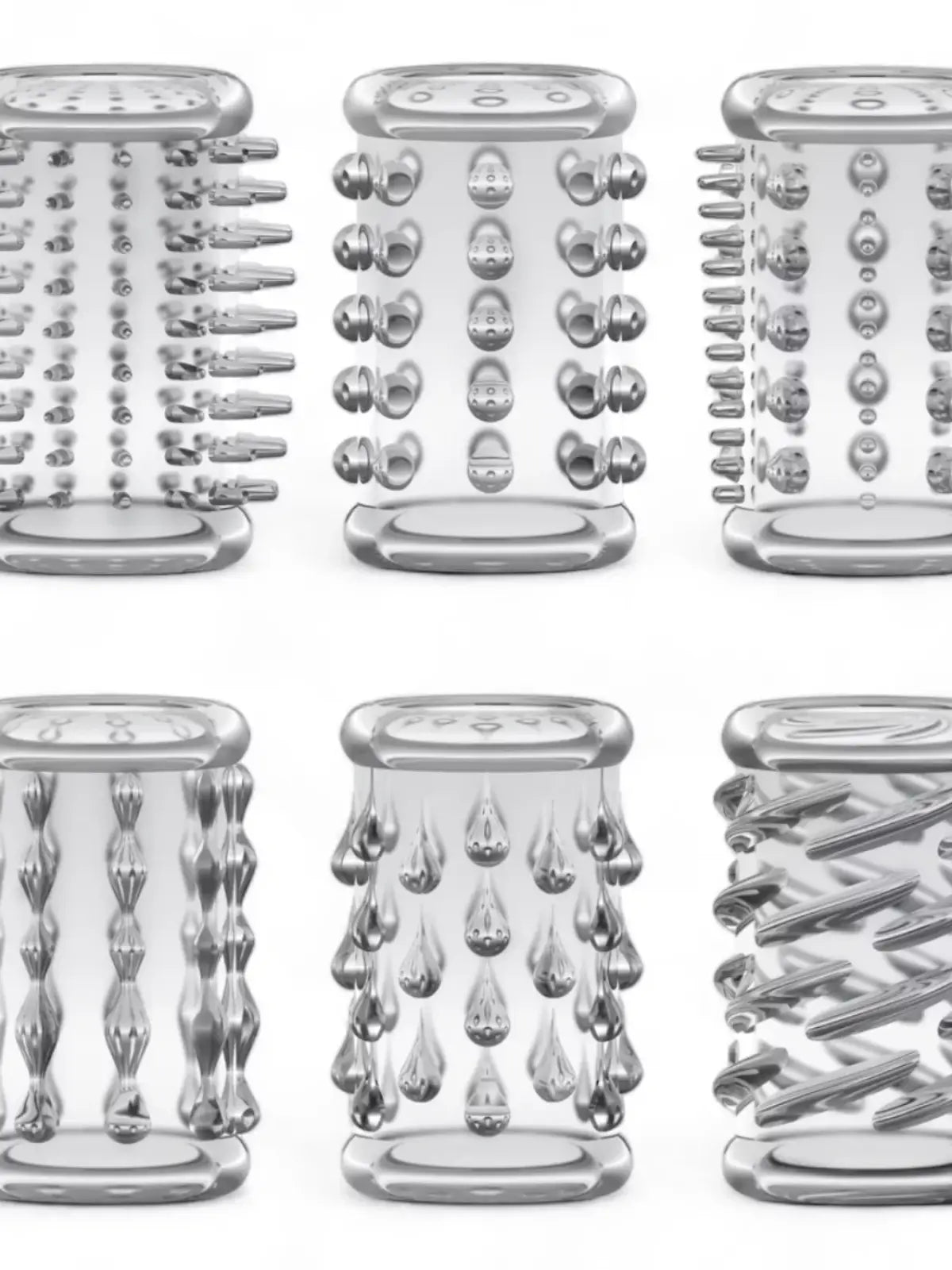 Tillverkad av flexibelt och bekvämt Tillverkade av TPE-material , dessa penisskydd anpassar sig till alla storlekar. Varje uttag har en unik textur som ger en ny känsla i varje ögonblick – oavsett om ni är ensamma eller tillsammans. De 5 cm långa ärmarna är också perfekta för ovanpå vibratorhuvudet , vilket mångdubblar njutningsalternativen.